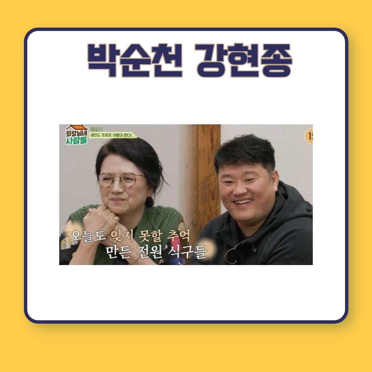 매주 월요일 오후 8시 20분 tvn story에서 방영하는 회장님네 사람들에서 반가운 손님이 찾아왔습니다. 바로 1년 만에 찾아온 탤런트 박순천인데요. 이번에는 전원일기에서 아들 수남이 역할로 나온 강현종과 재회를 해서 정말 감동적이었습니다. 오늘은 탤런트 박순천의 프로필을 알아보도록 하겠습니다.